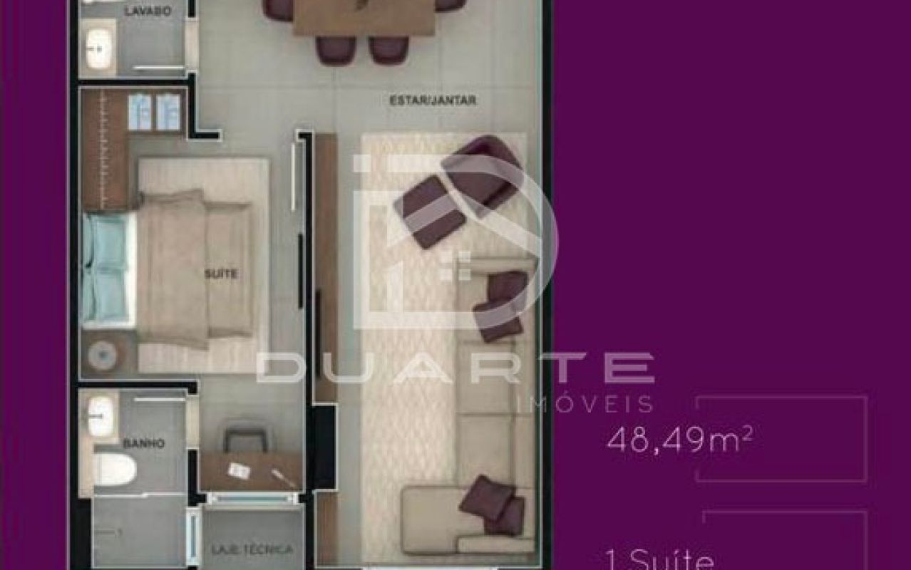 - Sala de estar integrada com sala de jantar;