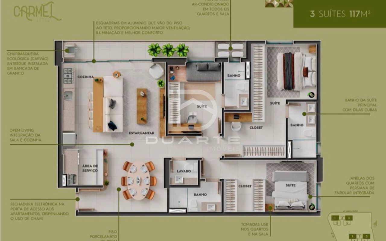 - Sala de estar integrada com sala de jantar;