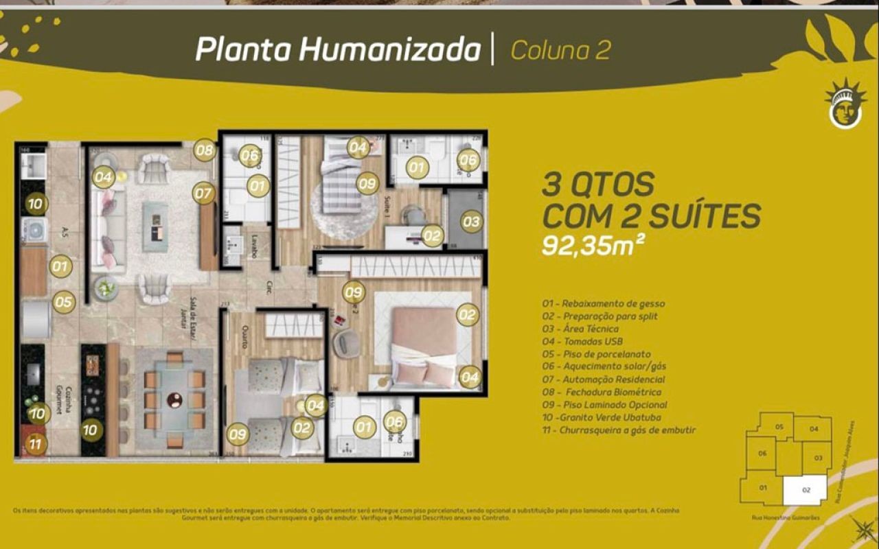 - 03 quartos, sendo 02 suítes;