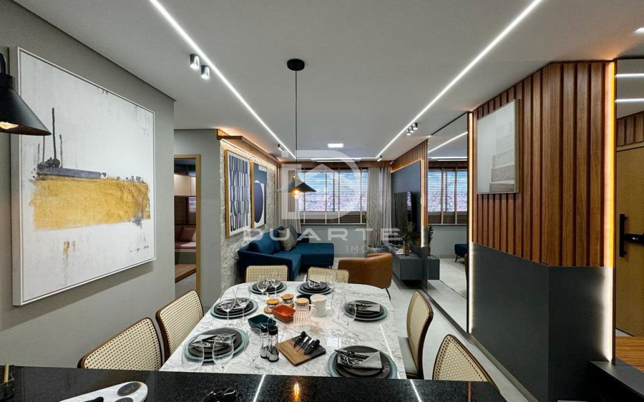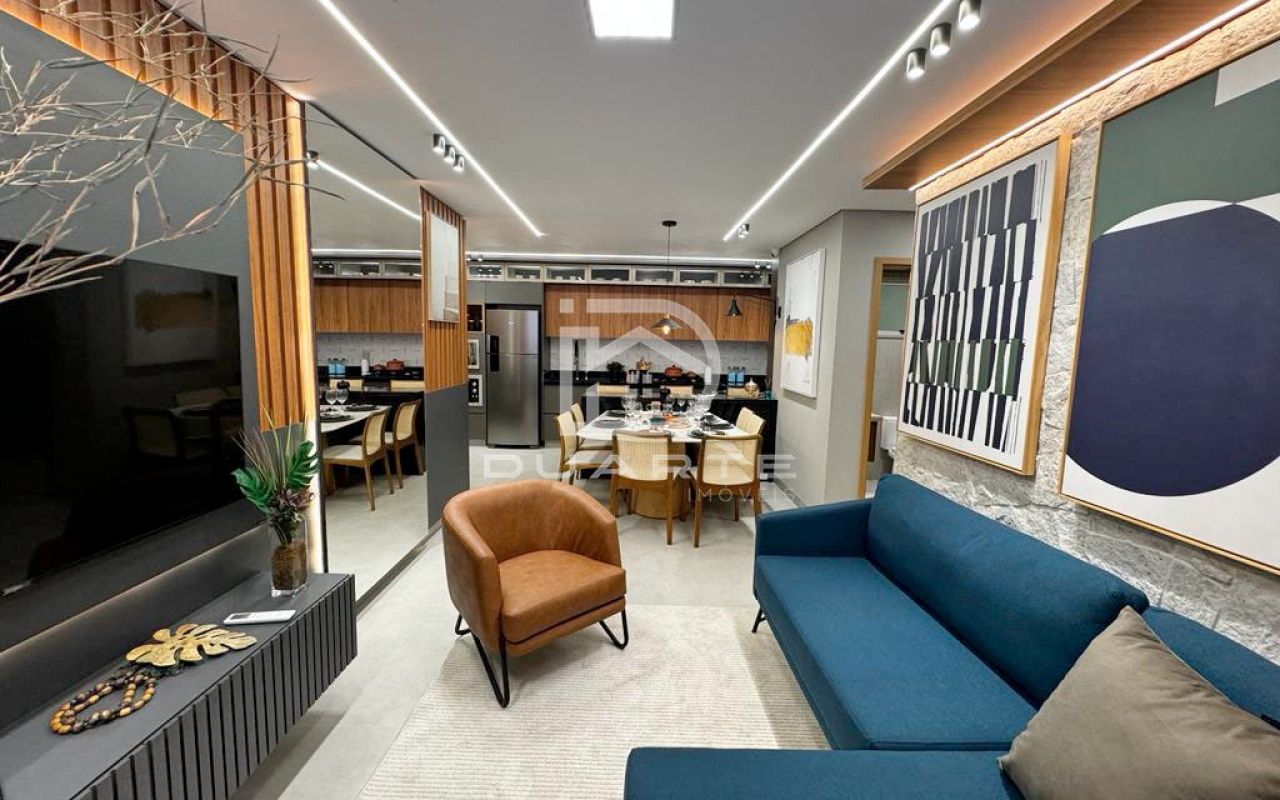 - Sala de estar/TV integrada com sala de jantar;
