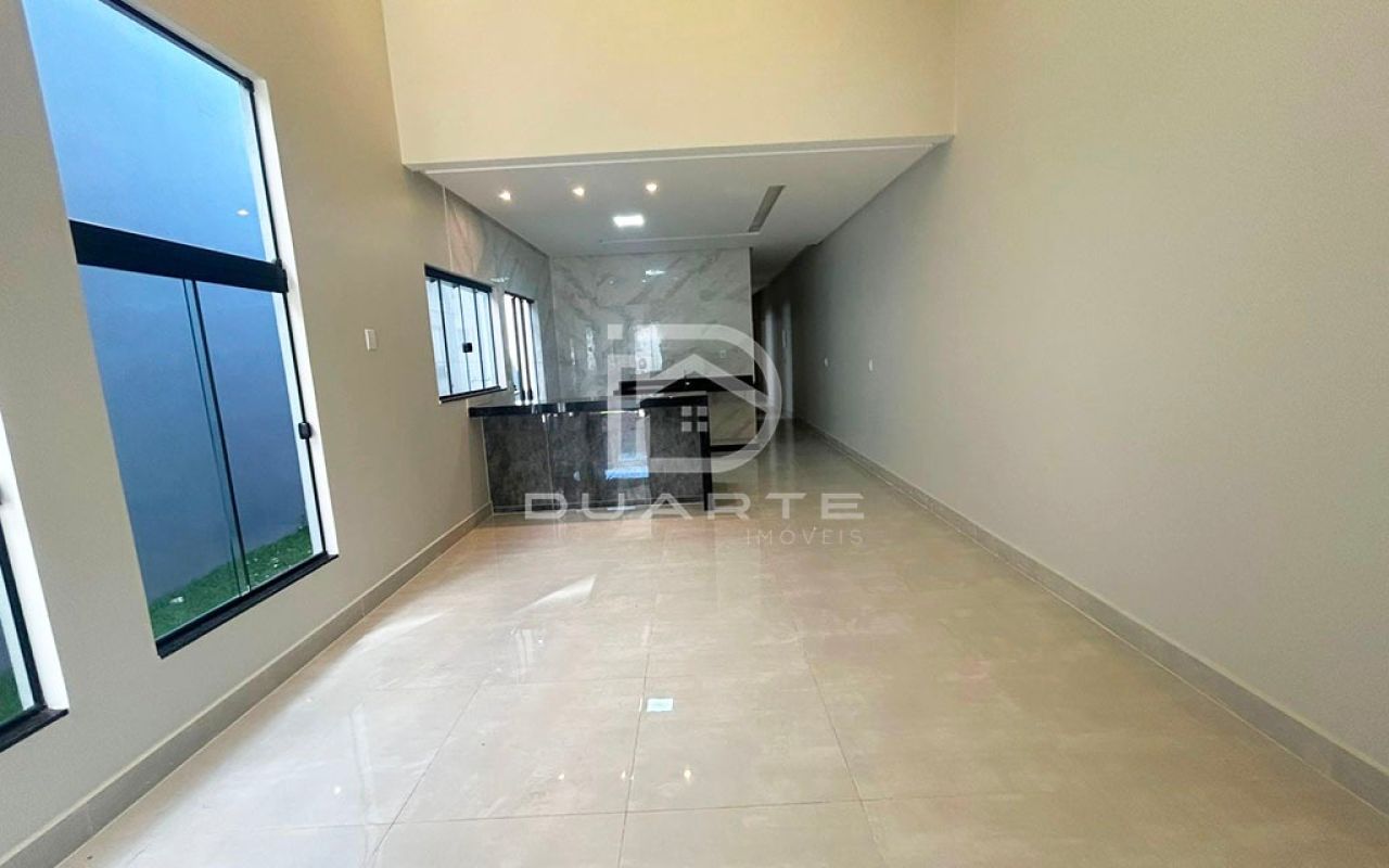 - Sala com pé direito alto integrada com a cozinha;