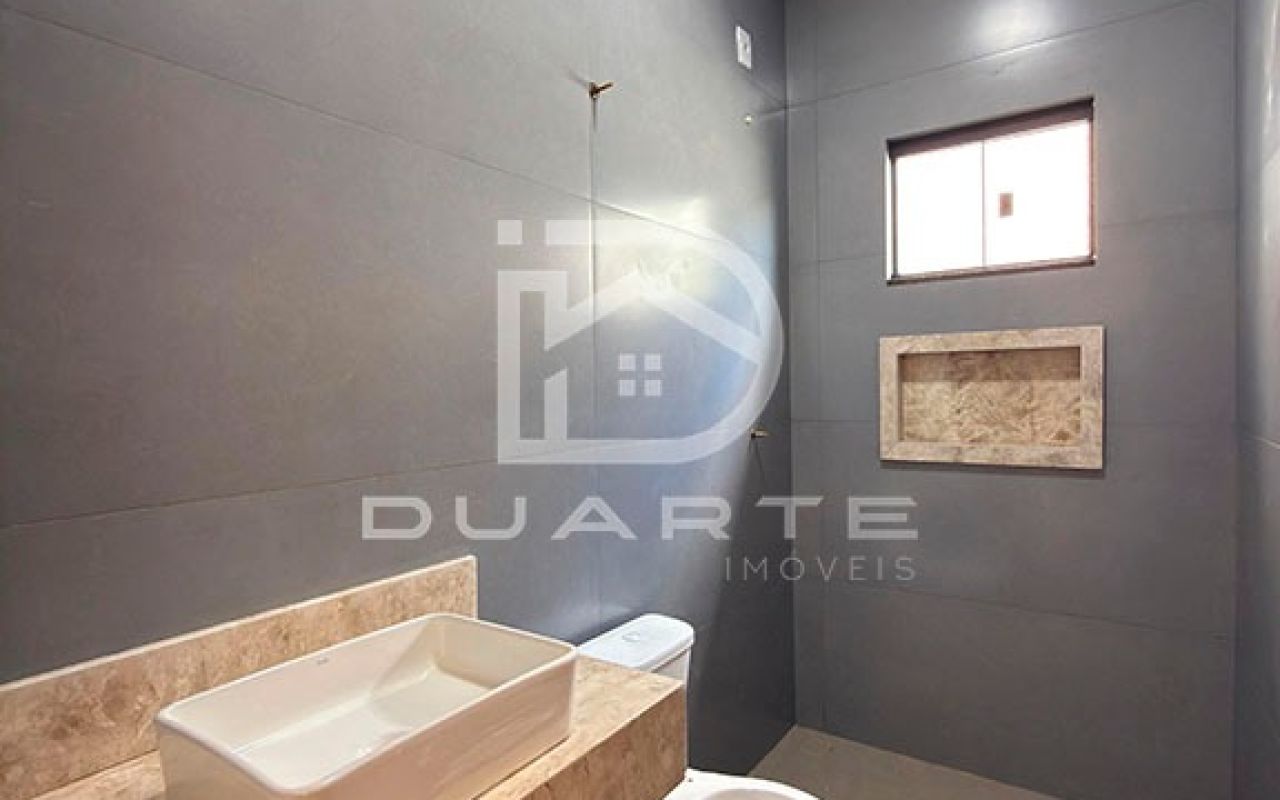 - A casa possui porta de acesso em alumínio, iluminação em LED, porcelanato 81x81, cerca elétrica, interfone, passagem para ar condicionado e gás encanado.