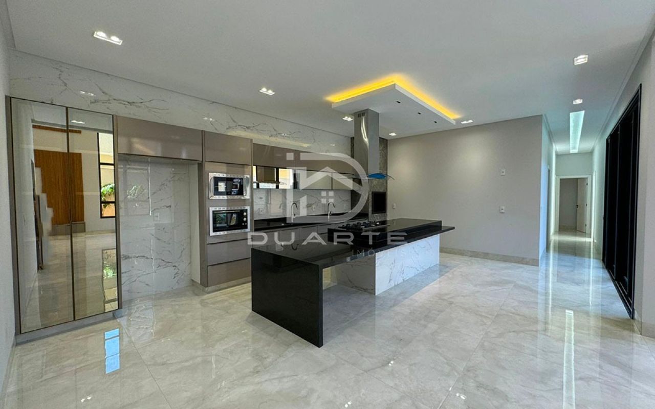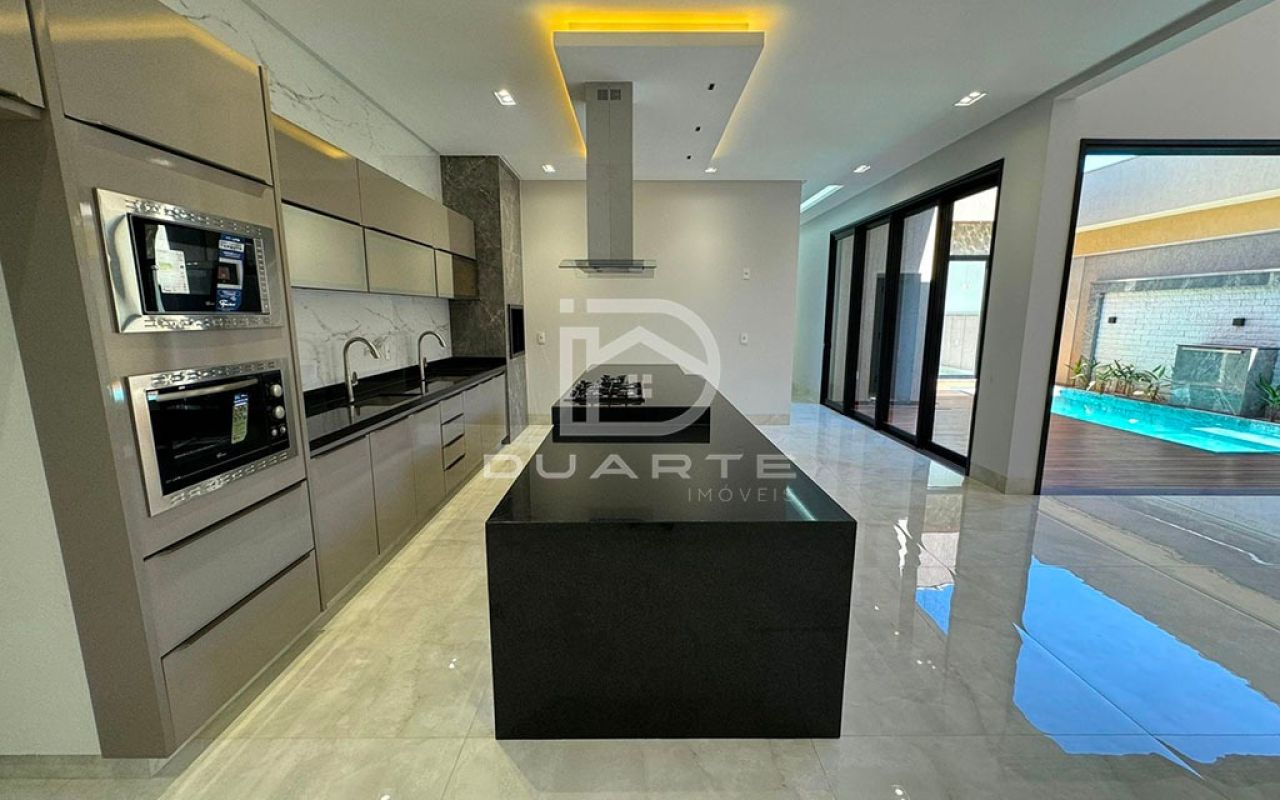 - Cozinha gourmet com ilha e duas cubas;
