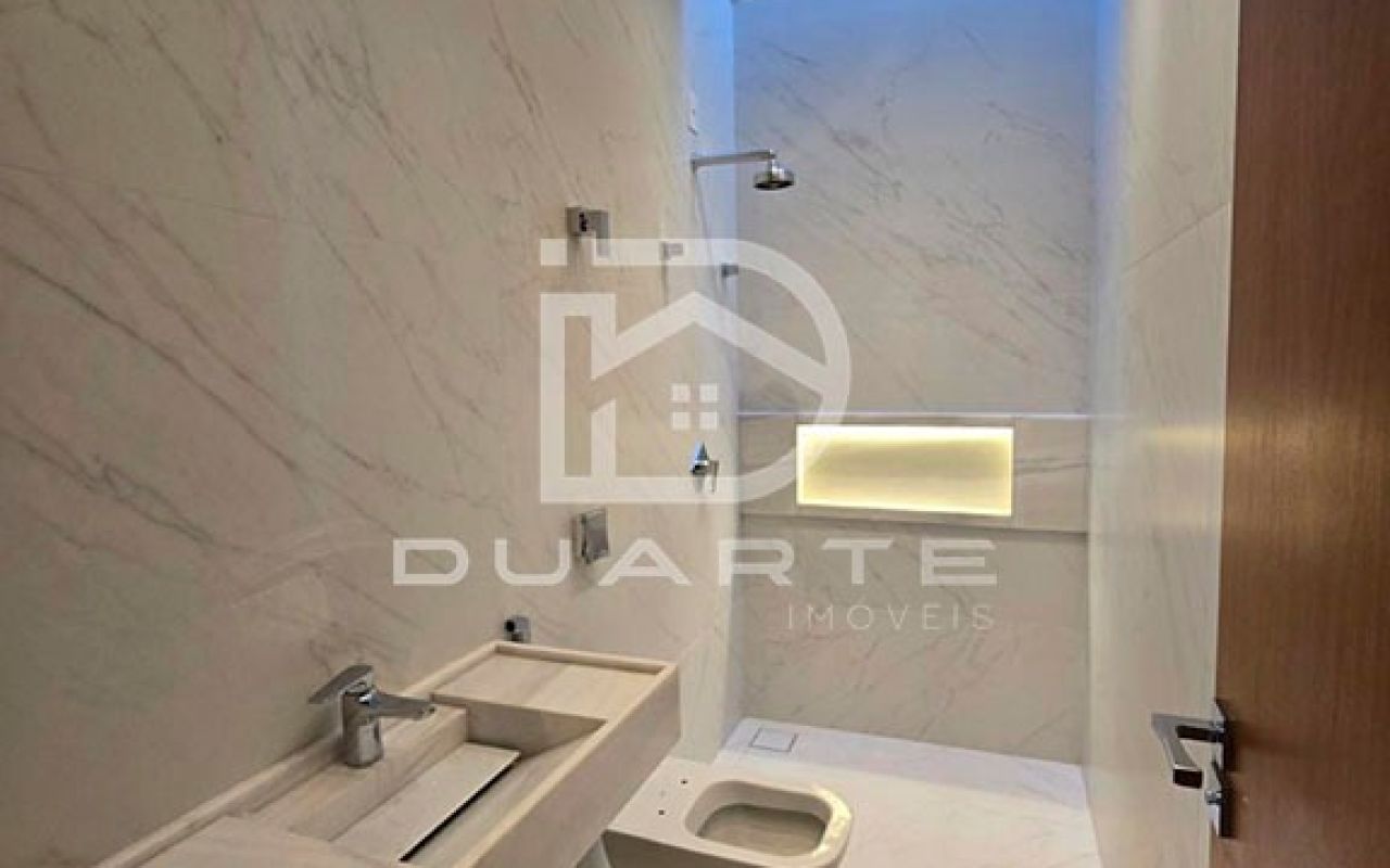 * 03 suítes, sendo 01 master com closet e banheiro com 02 chuveiros, 02 cubas e banheira;